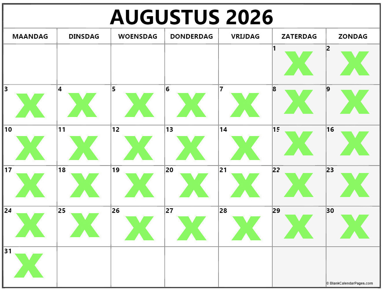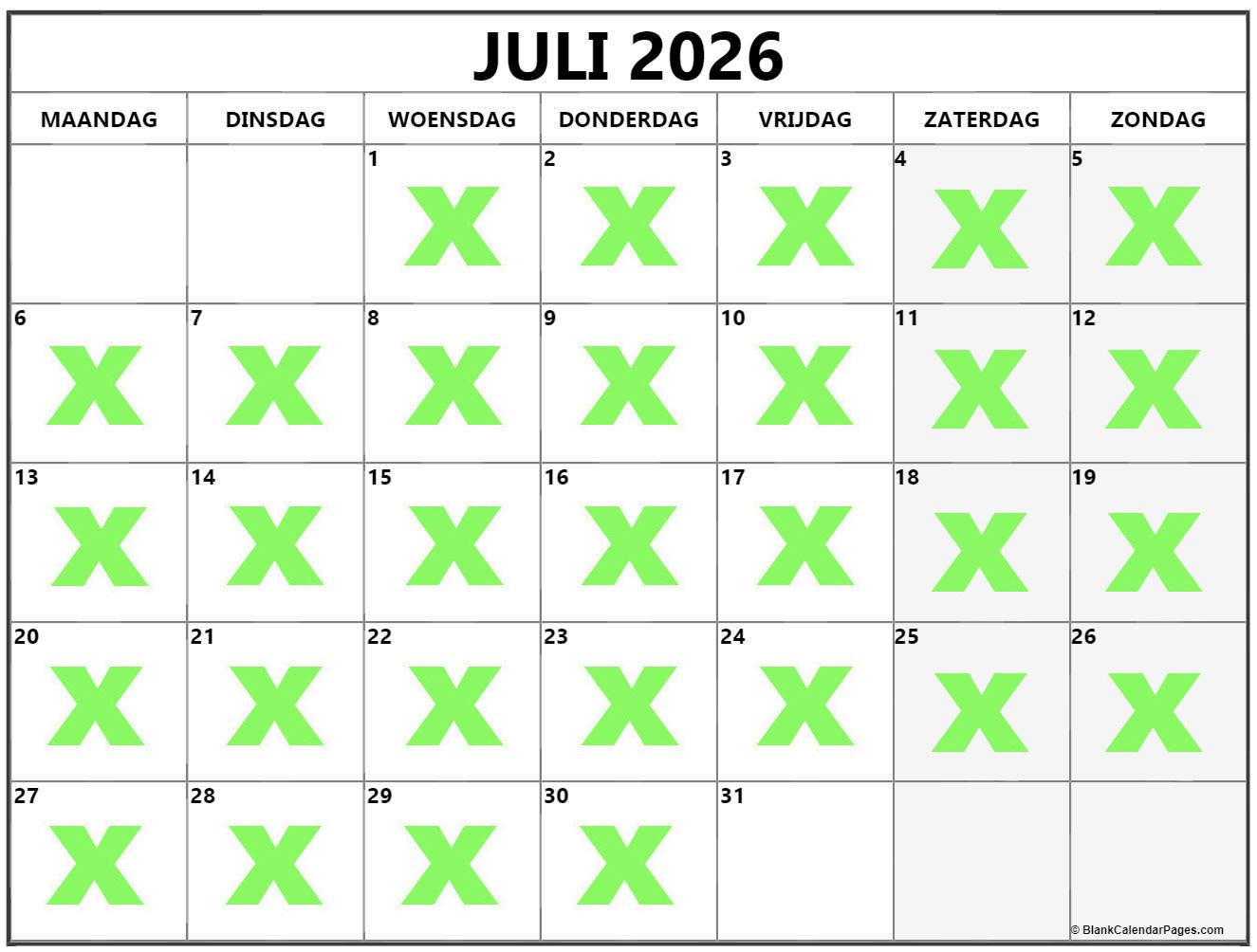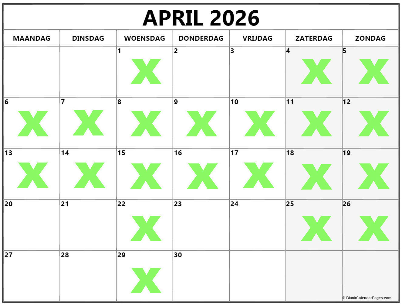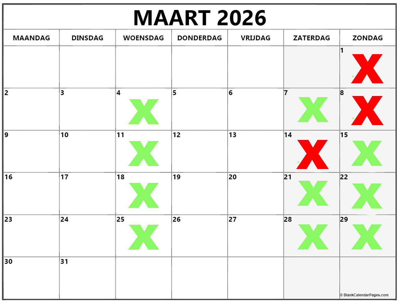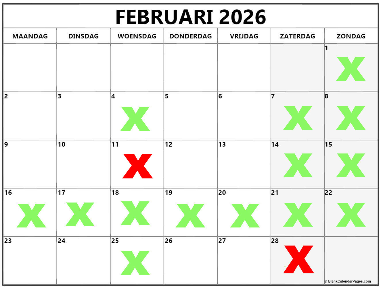 Groene kruisjes zijn vrij te boeken, datums zonder kruisjes zijn bespreekbaar, u betaald een voorschot van 25 euro om uw datum te reserveren, het voorschot dient betaald te worden met de boeking, zonder voorschot kan ik geen datum voor u reserveren. Het voorschot word in mindering gebracht van de totaalprijs.