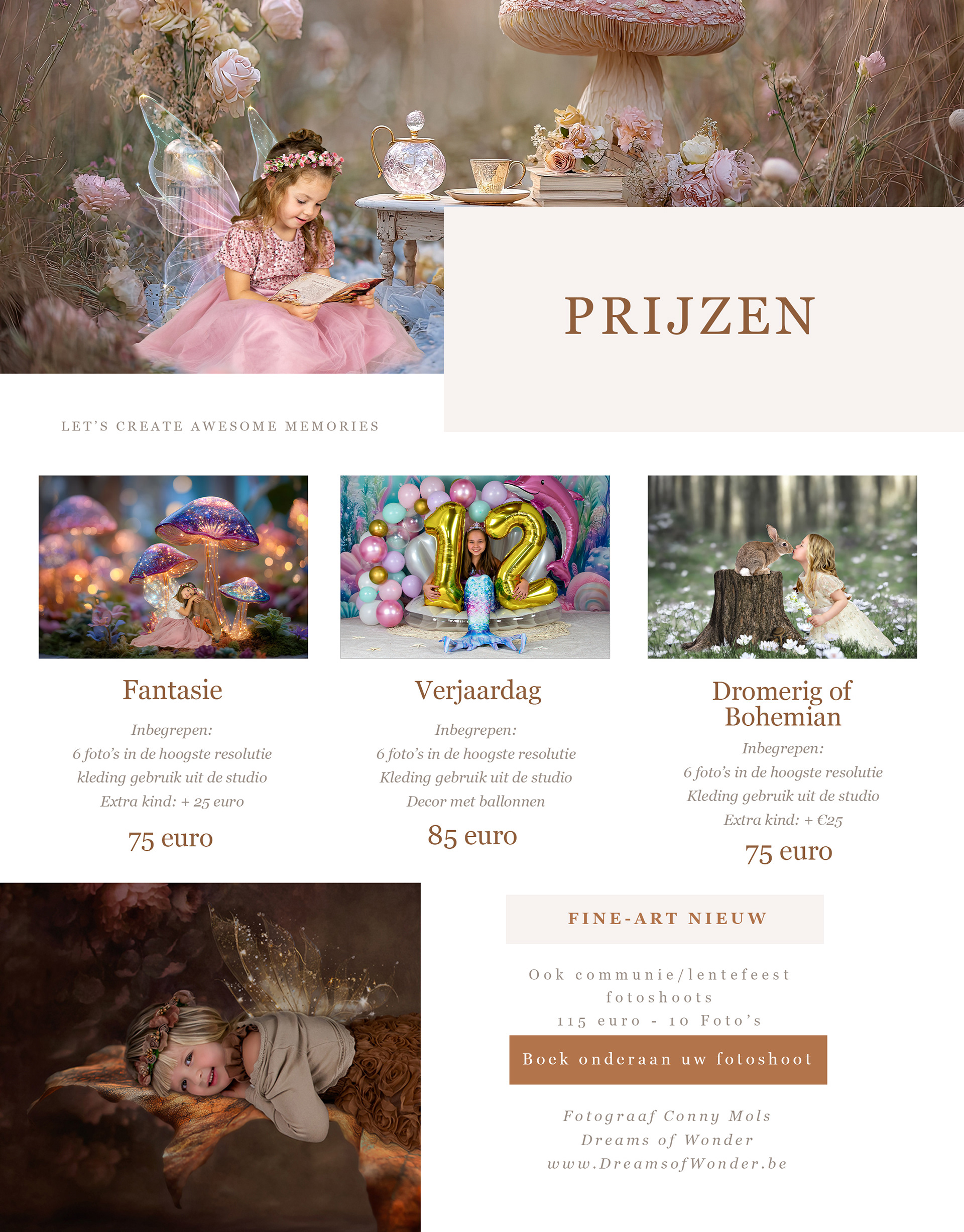 Deze fotoshoots kunt u boeken bij Dreams of Wonder photography.